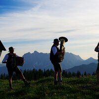 Auf gehts - der Berg ruft, zum "ECHTEN HÜTTENABEND" mit dem Wirt und seinem orig. "Bergfexn-Trio"